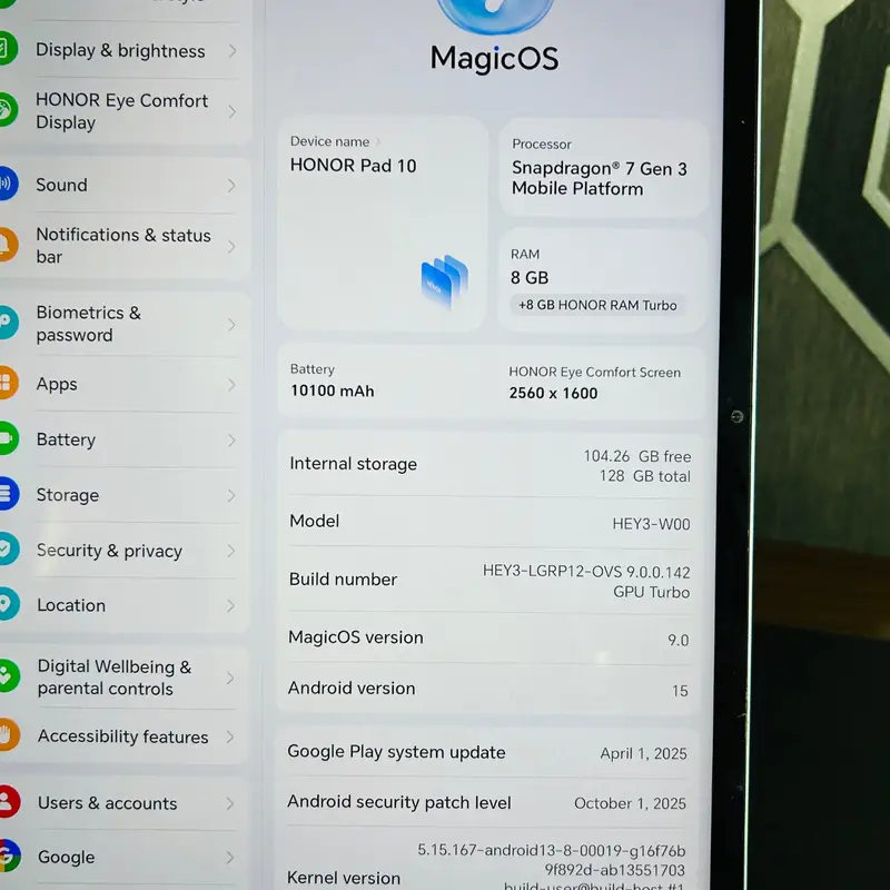 Honor Pad 10 | 128GB ROM | 8GB RAM | 12.1″ Display | Snapdragon 7 Gen 3 | Android 15 | 10100 mAh Battery | WiFi | Tablet PC